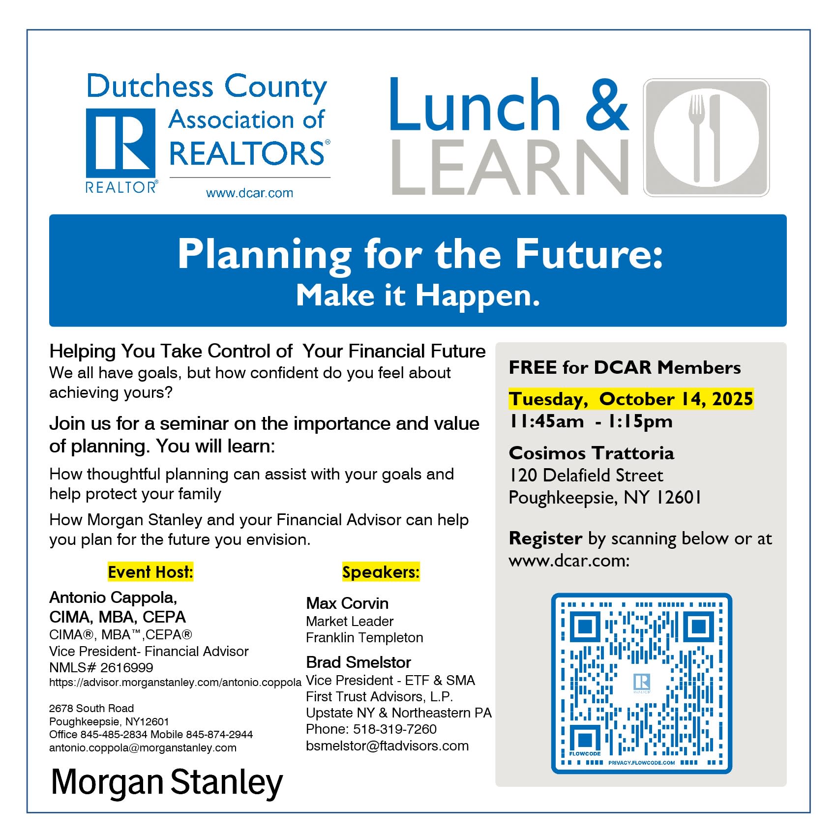 Join the Dutchess County Association of REALTORS® for a special Lunch & Learn seminar on the importance and value of thoughtful financial planning.